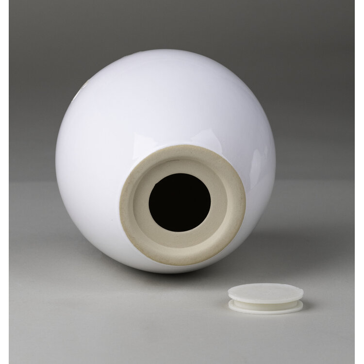 Die Keramikurne der Größe XL in glänzendem Weiß hat eine traditionelle Form und subtile Tierpfoten als Symbol für die bleibende Liebe zu Ihrem treuen Haustier. Die Urne wird an der Unterseite befüllt und mit einem Silikondeckel verschlossen, um eine sichere Aufbewahrung zu gewährleisten. Neben Weiß ist die Urne auch in Schwarz und in vier verschiedenen Größen erhältlich.