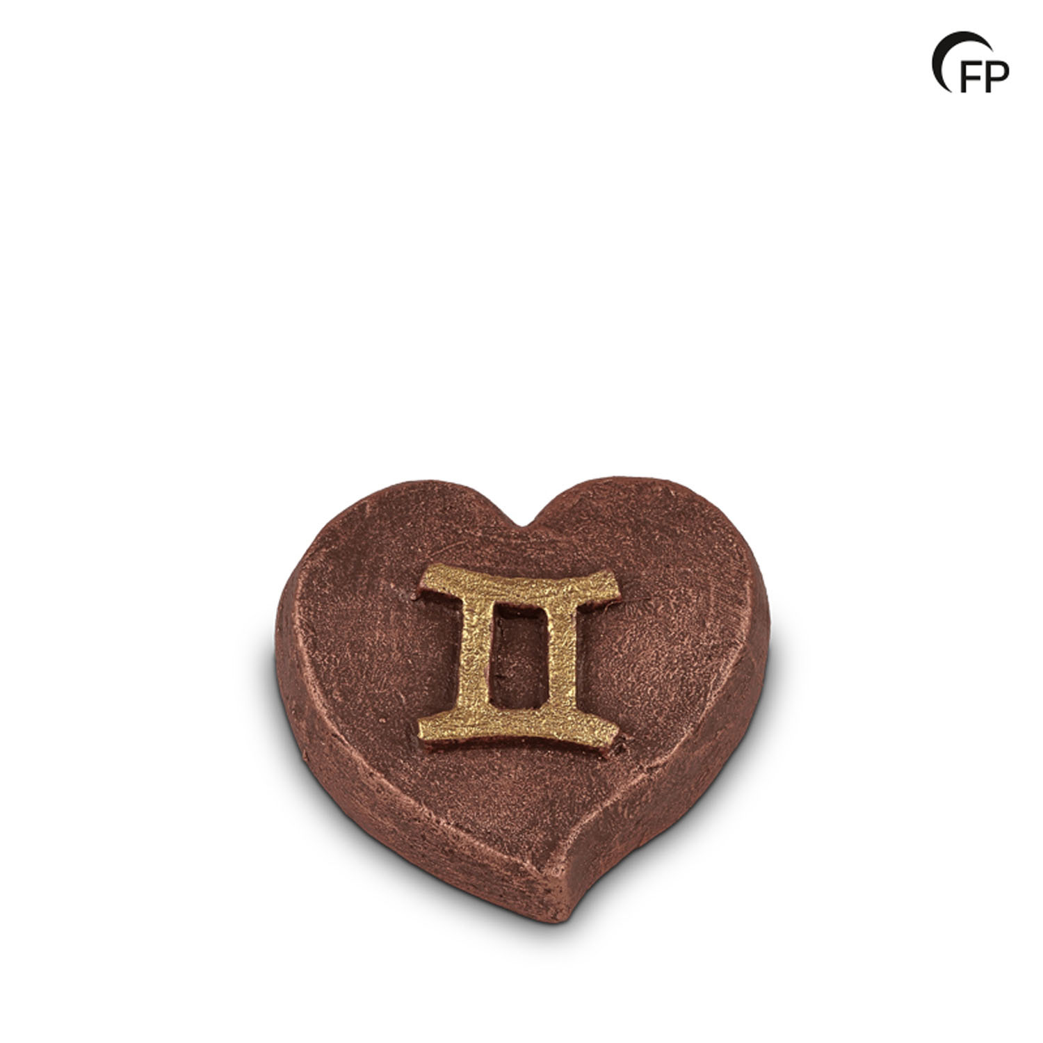 Dieses Astro-Herz ist mit dem Zeichen der Zwillinge versehen. Wenn Ihr geliebter Mensch dieses Sternzeichen hatte, spiegelt das goldfarbene Symbol die Eigenschaften der Zwillinge wider, wie Geselligkeit und eine vielseitige Persönlichkeit. Mit diesem Astro-Herz haben Sie ein persönliches Andenken.