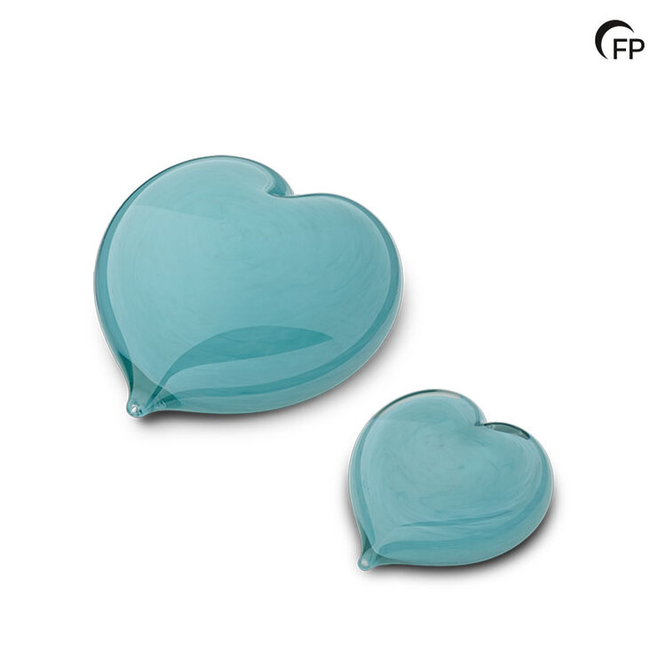This glass heart has a soft, light blue colour that gives it a serene look, while the shiny material adds to its luxurious appearance. The heart can hold a small amount of ashes, so that several relatives can have a personal memento. This heart is also available as a mini urn.