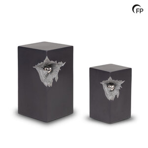 This cube-shaped ceramic urn combines a stylish, modern design with a warm expression of love. The design reflects the heartbreak that comes with the loss of a loved one, while the striking heart symbolises enduring love. The urn is also available in a larger version and in two other colours.