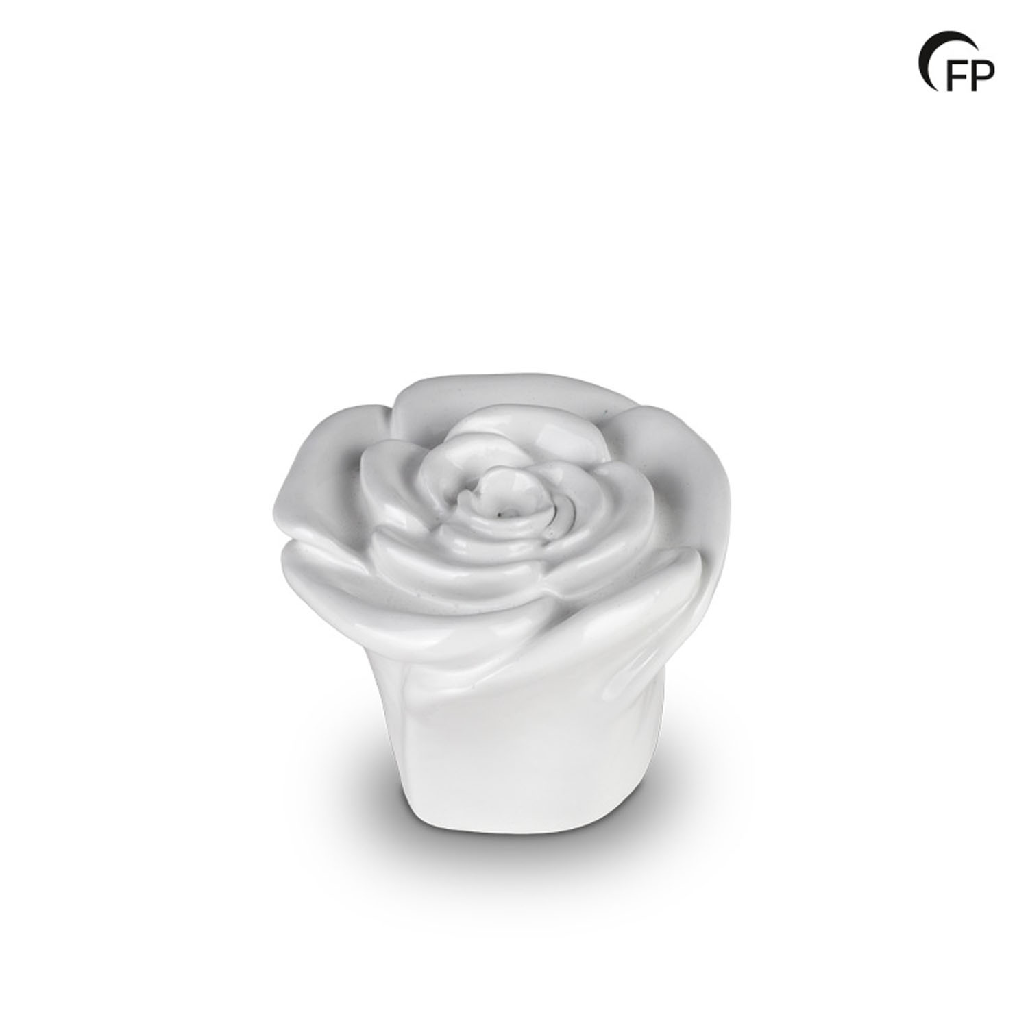 Esta rosa de color blanco simboliza el amor, la belleza y la temporalidad. Es un signo del vínculo inquebrantable con el ser querido que se echa tanto de menos. Gracias a su sutil y elegante diseño, la rosa se puede llevar fácilmente en la mano y ofrece consuelo en todo momento. Esta miniurna de cerámica también está disponible en rojo y en color plata.