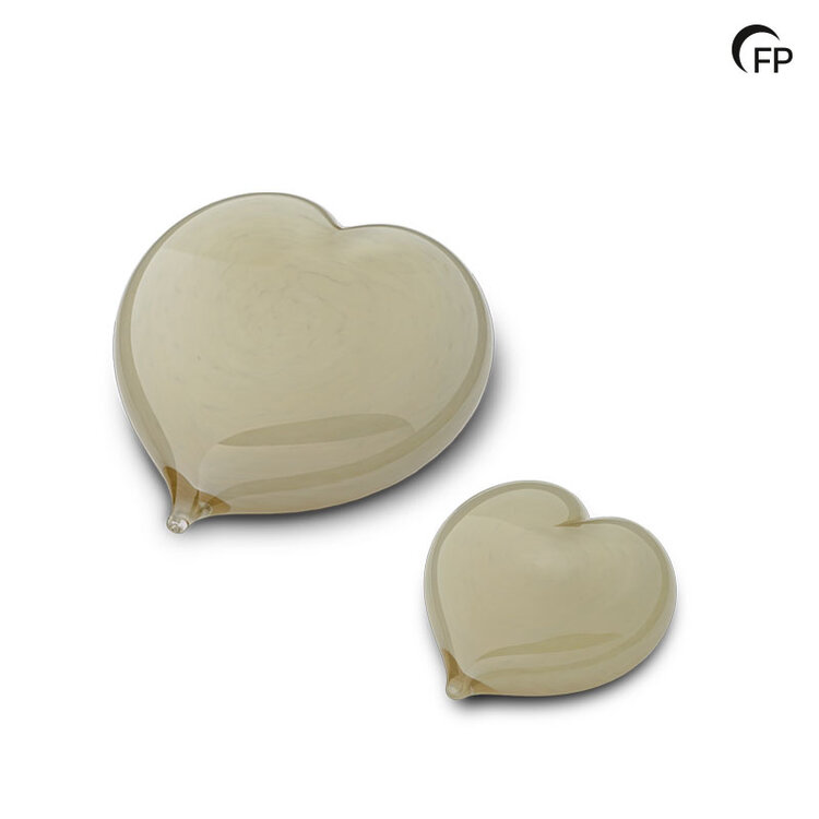 Este corazón de cristal, en color marfil, desprende delicadeza y, junto con el brillo del cristal, transmite una sensación cálida y elegante. Tiene capacidad para una pequeña cantidad de cenizas, lo que permite que varios familiares puedan tener su recuerdo personal. El corazón también está disponible como miniurna.