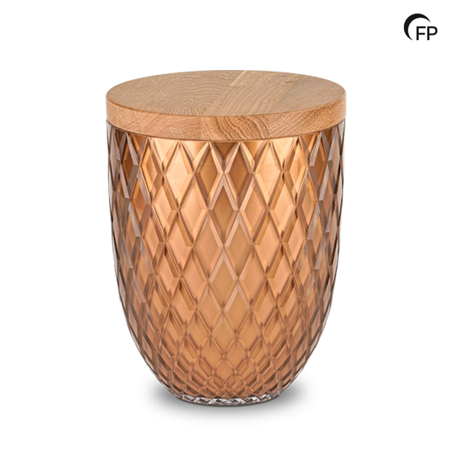 La urna de cristal de la colección Oak es una obra de arte soplada a mano en cristal de Bohemia y se suministra con una preciosa tapa de madera. Está acabada con un «corte lineal» doble, que lleva el nombre de Harmony y que añade un toque muy elegante.