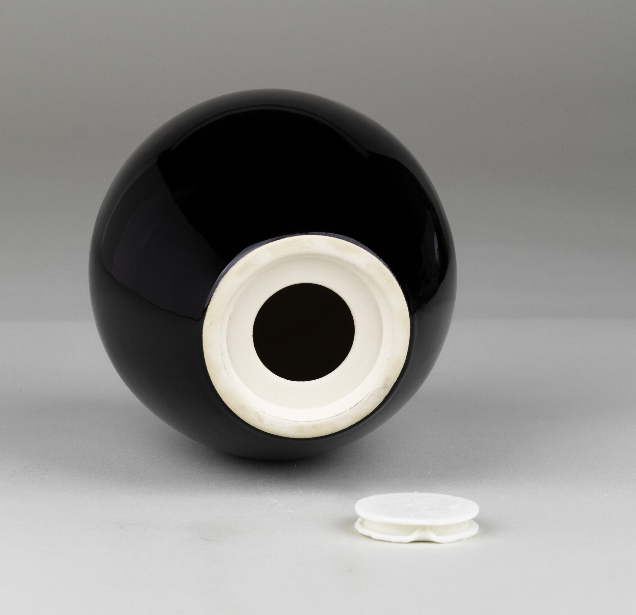 De keramische urn maat L in glanzend zwart heeft een klassieke vorm en is versierd met subtiele dierenpootjes, die de blijvende liefde voor uw trouwe huisdier uitdrukken. Aan de onderzijde kan de urn worden gevuld en veilig worden afgesloten met een siliconen sluitdop. Naast zwart is de urn ook verkrijgbaar in wit en in vier verschillende formaten.